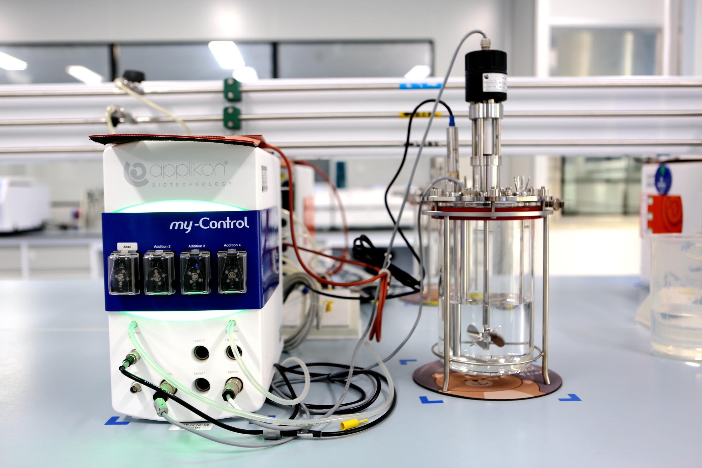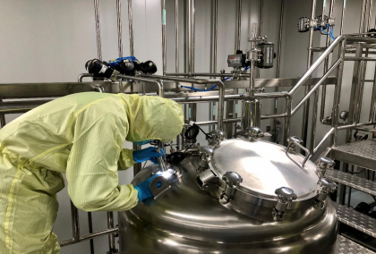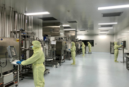 2*500L规模的真核生产线: 拥有近3249㎡符合cGMP要求的真核原液生产区域,设计独立的C级种子扩增、D级生物反应器培养间等独立的上、下游生产区域,下游病毒灭活前和病毒灭活后区域分开。 上游车间选用先进的生产设备,包括奥星的全自动配储液系统及CIP系统、INFORCE(瑞士)二氧化碳培养箱摇床、Applikon100/500L不锈钢生物反应器/Ctyiva200/500L一次性生物反应器、贝克曼全自动细胞计数仪及罗氏Cedex Bio生化分析仪、密理博澄清过滤系统等,单批次发酵规模500L。可满足多品种的上市产品及临床样品的共线生产。下游车间选用先进的生产设备,包括全自动配储液系统及CIP系统,东富龙层析系统、PALL超滤系统等。