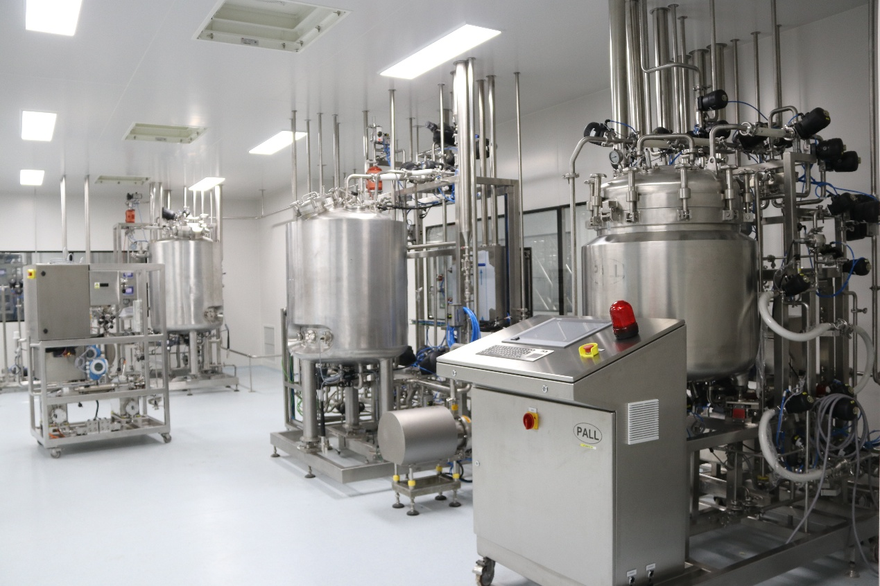 2*2000L-scale eukaryotic production line The facility boasts a cGMP-compliant eukaryotic drug substance production area of approximately 5,858 m². Equipped with Emerson piping and tank system and an Emerson-based automation control system, the workshop achieves integrated control across the entire production line. The design includes dedicated Grade C seed expansion and Grade D bioreactor cultivation rooms, as well as separate upstream and production areas, with distinct zones for pre- and post-virus inactivation. The upstream workshop utilizes advanced production equipment, including: INFORCE (Switzerland) CO₂incubator shakers,Cytiva (USA) Wave50 single-use bioreactors - Balfinger (Austria) 100/500L/2000L stainless steel bioreactors - Beckman automated cell counters and Roche Cedex Bio biochemical analyzers - Alfa Laval 2000L/h fully automated disc-stack continuous-flow centrifuges - Repligen clarification filtration systems The single-batch cultivation capacity reaches 2,000L. The downstream workshop is equipped with advanced production systems, including: - Cytiva 1-inch IC systems - Pall ultrafiltration systems